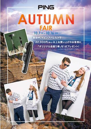 株式会社TSI(本社:東京都港区)が運営する『PING APPAREL』では、 10月7日(金)~10月16日(日)の期間、 PING APPAREL直営店にてオータムフェアを開催いたします。