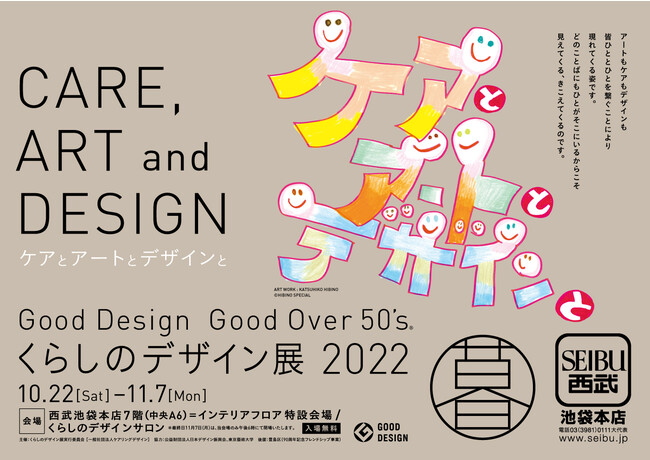 西武池袋本店では2013年より、自分らしく豊かに生きる暮らし方を提案する「くらしのデザイン展」を開催しています。Good Over 50’s(R)-大人の暮らしの自己実現-をコンセプトに、優良な道具と住まい方をご紹介してきました。第10回目となる今年は「ケアとアートとデザインと」をテーマに開催いたします。東京藝術大学、日本デザイン振興会、そごう・西武、ケアリングデザイン、豊島区が協力し、福祉とアートとデザインを融合させた新たな商品や取り組みをご紹介。産官学が連携し、だれにとっても心地よい暮らしを提案いたします。