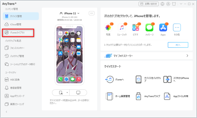 iTunes代替ソフトとしてAnyTransはiTunesからiPhoneへ、さらにiPhoneからiTunesへ同期できます。iTunesと比べて、AnyTransを使うとiPhoneに既存の曲や動画データが消去されません。