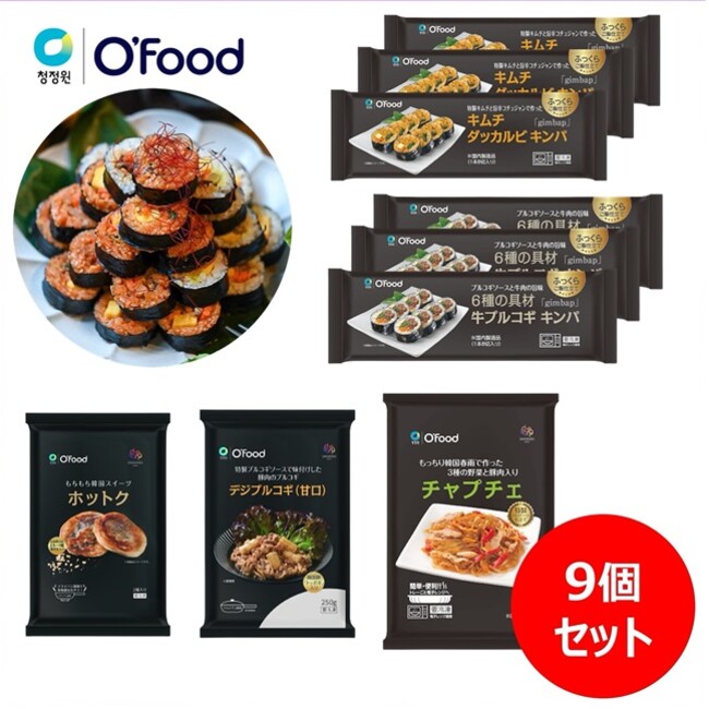2種類のキンパに、デジプルコギ、チャプチェ、ホットクがセットになった韓国惣菜を満喫できるお得なセット。