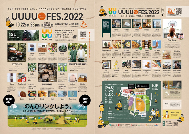 株式会社中商(本社:大阪府岸和田市、代表:中島剛)グループが主催する「UUUU.FES(フォーユーフェス)2022」は、2022年10月22日(土)23日(日)に大阪府貝塚市にある かいづかいぶき温泉(旧ほの字の里) にて開催いたします屋外体験型イベントです。【WEBページ】https://thanks-festival.info/