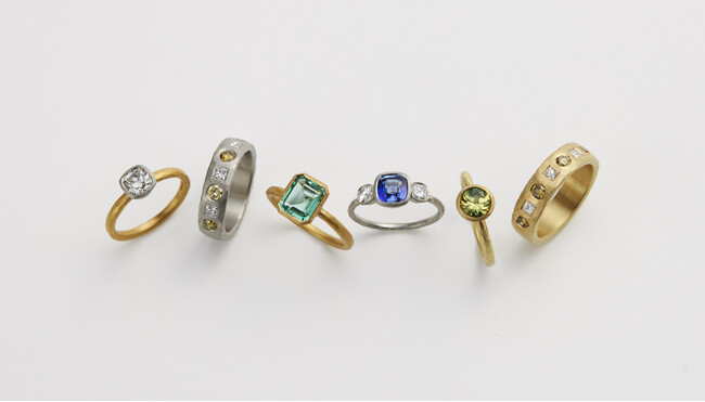 今回の来店イベントでは、新作を含む豊富なコレクションよりマルコム・ベッツ氏と相談しながら世界で一つだけのジュエリーをお選びいただけます。デザイナー自身が厳選したエメラルドやサファイアをはじめ、さまざまなカットのダイヤモンドが最も美しく輝くセッティングにこだわったリングを中心に、ピアス・ネックレス・ブレスレットなど多彩にラインナップ。