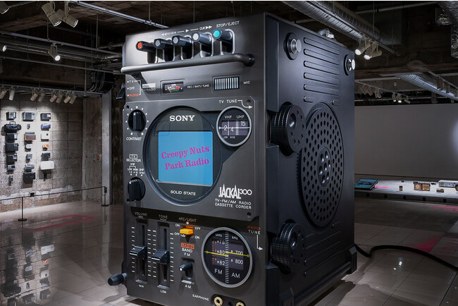 “My Story, My Sony”をテーマに、歴代のソニー製品やエンタテインメント(音楽、映画、ゲーム)の作品などが集まる特別な展示プログラムです。ソニーが創業して現在に至るまでの歴代の商品を、ソニーグループとして過去最大級の800点以上展示。あなたが使っていた思い出の商品もこの中にあるかも。さらに、国内初となるアンディ・ウォーホルが愛用していた実物のウォークマンが展示されるなど、各時代の文化やユーザーとの接点を象徴する展示を展開します。また、ロームシアター京都 1Fプロムナードにはラジカセ「CFS-99」を巨大化させた、ラジカセ型のジュークボックスを設置します。