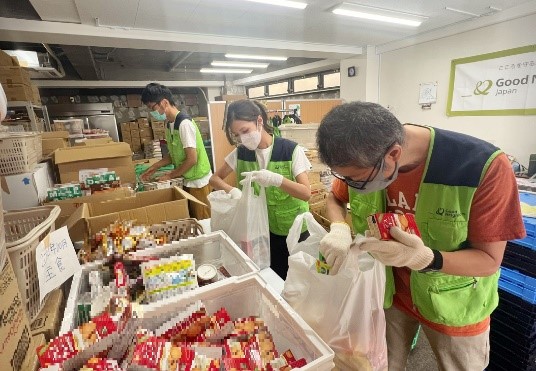 食糧に関連する取り組みとして、国内で経済的に困窮するひとり親家庭の子どもたちの食の安全と健康を支援するとともに、食品ロス削減に貢献すべく、6月に認定NPO法人 グッドネーバーズ・ジャパン(以下、GNJP)に300万円を寄附しました。これに関連し、8月より当社社員ボランティアが食品配布に関する作業をサポートしています。この活動は今年11月末まで継続予定です。
