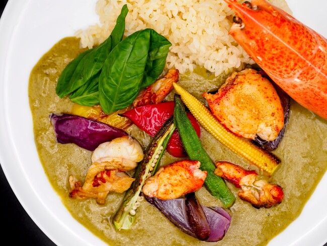 香草や野菜、ロブスターの旨味を生かしたグリーンカレーを香り豊かなバターライスとともに、ご堪能ください。