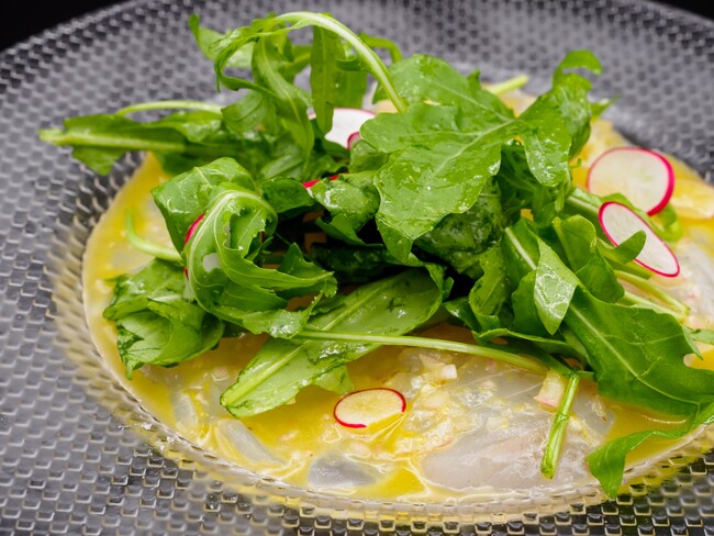 ヒラメの昆布締め 黄柚子のヴィネグレット