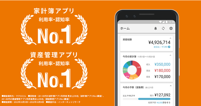 この度、本サービスは、家計簿アプリおよび資産管理アプリとして利用率・利用経験率・認知率でNo.1を獲得することができました。今後も、すべての人のお金の課題を解決すべく、提供価値の最大化を目指し、機能改善やサービス開発を進めてまいります。