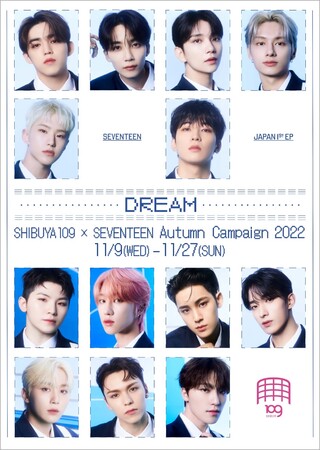 2022年11月9日(水)にリリースされるSEVENTEEN JAPAN 1ST EP 「DREAM」の発売を記念した「SEVENTEEN」のポップアップストアが、SHIBUYA109渋谷店・SHIBUYA109阿倍野店にオープンし、ここでしか手に入らない限定アイテム等を販売いたします。
