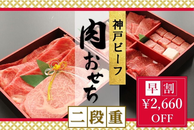 JA全農兵庫が運営する、産地直送通販サイト「JAタウン」内のショップ「あつめて、兵庫。」では、今年も神戸ビーフを存分にお楽しみいただける迎春セット『神戸ビーフ 肉おせち二段重 -2023-』を販売いたします。