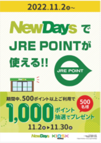 ●JRE POINTが使えるコンビニはNewDays ♪ キャンペーンを開催します