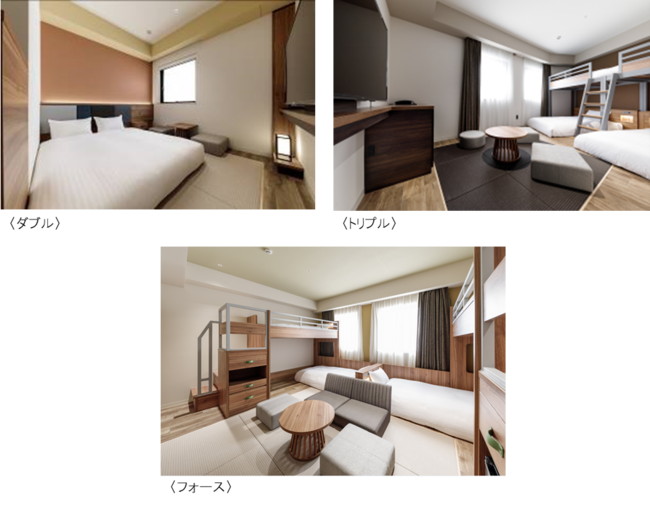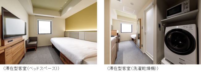 ポストコロナに向けた新たな取り組みとして、IoTを活用した自動チェックイン機、非接触インターフェイスの導入を行い、接触機会を減らします。また、洗濯乾燥機や電子レンジ、ミニキッチンなどを備えた滞在型客室を設けるほか、「ダブル」や「ツイン」に加えて「トリプル」や「フォース」といった多様なルームタイプをご提供することで、さまざまなニーズにお応えするとともに、戻りつつあるインバウンド需要や国内観光を取り込みます。