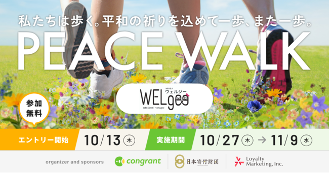 NPO法人WELgee(所在地:東京都渋谷区、代表:渡部カンコロンゴ清花)は、コングラント株式会社が主催するオンライン参加型チャリティウォーク企画「PEACE WALK」の寄付先団体の一つとして選ばれました。イベント期間中の参加者数や累計歩数などに応じて、各団体へマッチング寄付が届けられます。イベント期間は10月27日(木)~ 11月9日(水)、10月13日(木)よりプレエントリーが可能です。WELgeeを応援してくださる参加者を募集します。