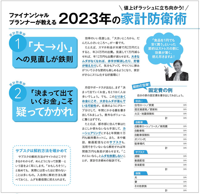 ファイナンシャルプランナー内藤眞弓さんが、値上げラッシュに立ち向かうための5か条をアドバイスする特集記事も必読です! 年末調整の申告漏れについてや、スマホプランの選び方コラムなど役立つ情報が充実しています。