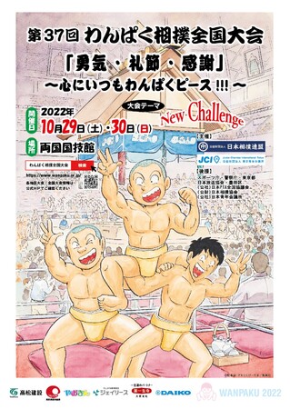 公益社団法人東京青年会議所 (所在地:東京都千代田区平河町、理事長:山本 健太) は、2022年10月29日(土)・30日(日)、公益財団法人日本相撲連盟との共催にて、第37回わんぱく相撲全国大会『勇気・礼節・感謝』~心にいつもわんぱくピース!!!~を両国国技館にて開催いたします。(https://wanpaku.or.jp/)