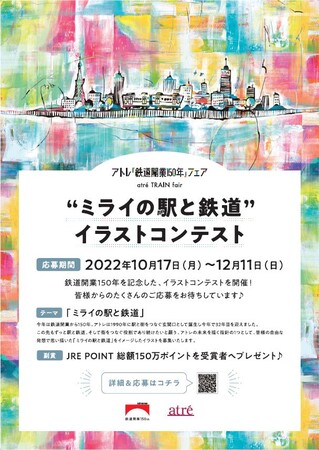 アトレ「鉄道開業150年フェア」第二弾 副賞JRE POINT総額150万ポイント!「ミライの駅と鉄道」イラストコンテスト開催