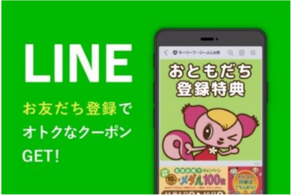 モーリーファンタジー各店のLINE公式アカウントを「友だち追加」すると、お得なクーポンや楽しい最新プライズ・イベント情報を配信します。ぜひご登録ください。
