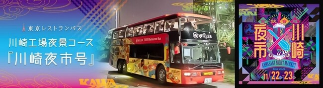 ~川崎の夜の魅力を全国に向け発信する「川崎夜市」と「東京レストランバス」のコラボ企画~人気の“川崎工場夜景コース”が『川崎夜市号』として2日間限定運行!