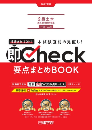 本年度前期一次検定にて実施した「2級土木施工管理技士 一次検定(前期)解答速報 YouTube LIVE配信」では、受検された皆さまからたくさんの賛同をいただきました!これを受けて日建学院では後期一次検定において「2級土木施工管理技士 一次検定(後期)直前Check」をYouTube配信いたします。ぜひ要点まとめBOOKをダウンロードの上、直前Checkで最終確認しましょう。
