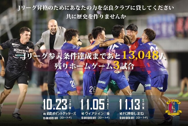 Jリーグ参入条件である観客動員数達成まで13,048人。