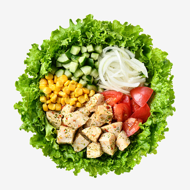 コーン・きゅうり・オニオン・トマト・ハーブチキン・