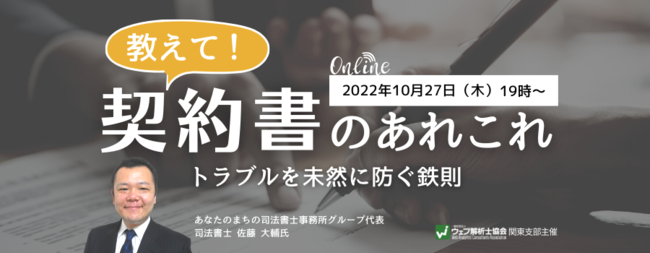 2022/10/27(木)19:00 - 21:00 【WACA支部主催講座】教えて!契約書のあれこれ~トラブルを未然に防ぐ鉄則~