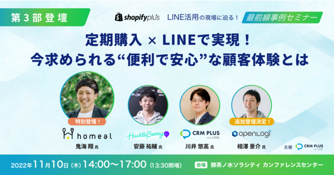 2022年11月10日(木)に開催する「Shopify Plus - LINE活用の現場に迫る!最前線事例セミナー」(主催:株式会社ソーシャルPLUS)にあたり、登壇内容の続報をお知らせします。