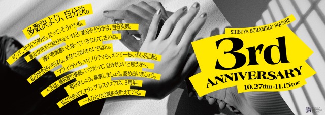 「SHIBUYA SCRAMBLE SQUARE 3rd Anniversary(サードアニバーサリー)」「多数決より、自分決。」をテーマに10月27日(木)より開催