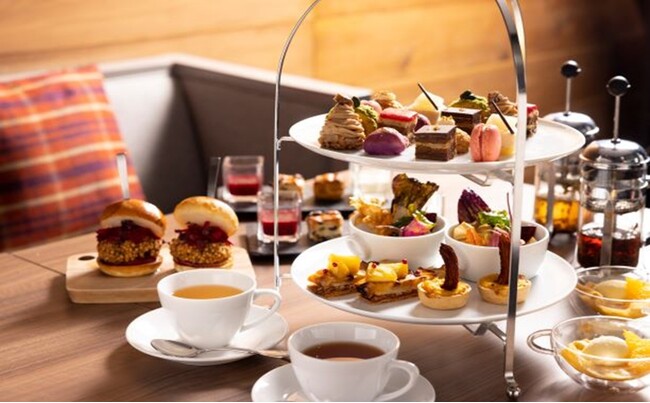 スイーツは、濃厚で甘みが強い小布施栗を使用したモンブランや、長野県産のりんごを使用したパイ、初雪を連想させる洋梨のコンポートを添えたチーズケーキをご用意します。また、セイボリーは、ソテーし甘みを際立たせたりんごと信州牛のジューシーなカツレツにあられの食感をプラスしたスライダーバーガー、冬に旬を迎えるビーツや長芋、カブを使用した根菜と茸の温野菜です。軽井沢の季節の移り変わりを視覚と味覚で楽しむアフタヌーンティーをご堪能ください。