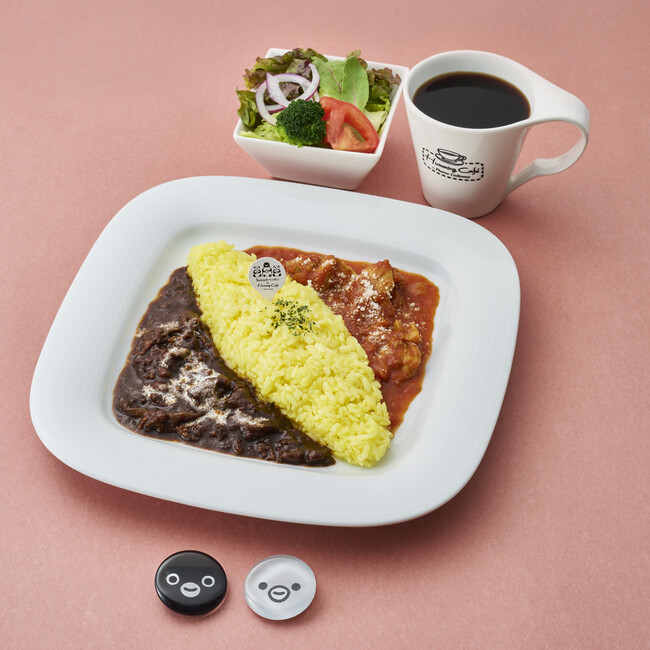 ハッシュドビーフとチキントマト煮込みをどちらも一度に味わえるハミングカフェで人気のライスメニュー「二種盛り」に、限定グッズ付きのセットが登場。