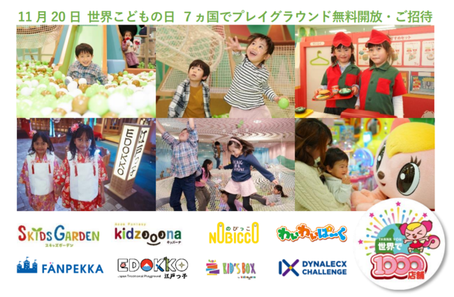 株式会社イオンファンタジー(本社:千葉県千葉市、代表取締役社長:藤原徳也、以下、当社)は、11月20日「世界こどもの日(World Children’s Day)」に、安全・安心な空間での遊びで子どもの健やかな心身が育まれることを願い、当社が運営する国内210カ所の時間制遊具施設・インドアプレイグラウンドを無料開放いたします。
