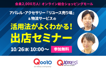 インターネット総合ショッピングモール「Qoo10(キューテン)」を運営するeBay Japan合同会社(本社:東京都港区、代表取締役:グ ジャヒョン)は、アパレル・アクセサリーなどのリユース品関連の出店をテーマに、売り場と在庫・受注代行サービス活用法がわかる無料のオンライン出店セミナーを2022年10月26日(水)に、倉庫からラストワンマイル配送まで多様なサービス分野を持つEコマース物流ソリューションプロバイダーの「Qxpress」と共に開催します。