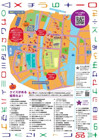 また、「子ども110番スタンプラリー」と「海街キッズクリーン大作戦」のお菓子交換所は、10月29日(土)は品川シーズンテラスイベント広場に、30日(日)は品川カルチャーベース(天王洲)に設置します。お間違えなきようにお気を付けください。