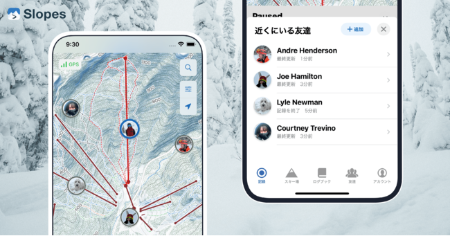 Slopesは、リアルタイムで友達間の位置情報の共有に対応しました。ユーザーとその友達が雪山のどこにいるかをデジタルマップ上で確認することができます。