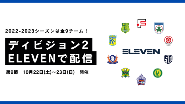 10月22日(土)、10月23日(日)に開催するFリーグ2022-2023 ディビジョン2 第9節の3試合を以下の通り、ELEVENにてライブ配信いたします!全試合を無料でご視聴いただけますので、ELEVENのアプリをダウンロードいただき、ぜひご視聴ください!