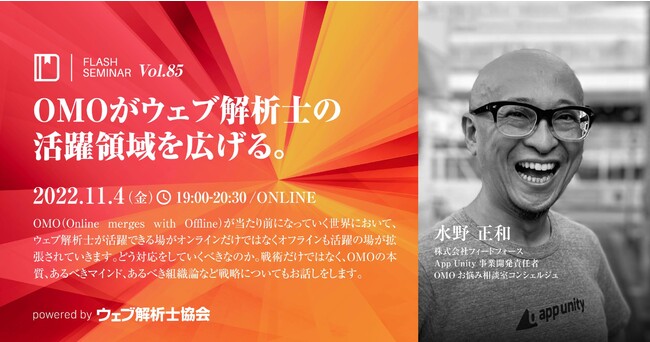 2022/11/4(金)19:00 - 20:30 【Flashセミナー】 Vol.85 【無料】OMOがウェブ解析士の活躍領域を広げる。