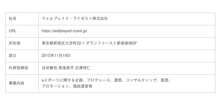 ウェルプレイド・ライゼストは、eスポーツに関するあらゆるジャンルのイベントや大会の企画・運営、映像制作・配信を行ってきたウェルプレイドと、最先端の放送技術を駆使したeスポーツの番組制作ならびに放送、大会・リーグ運営、プロモーションを行ってきたライゼストが2021年2月に合併し誕生したeスポーツの総合商社です。「eスポーツの力を信じ、価値を創造し、世界を変えていく。」をミッションに、新たな事業機会や展開領域と継続した成長の実現や、圧倒的なプレゼンスを確保することで、業界のさらなる発展に取り組んでおります。