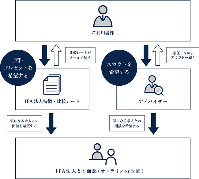 また、金融業界出身の専任キャリアアドバイザーのサポートもあるため、金融パーソンはキャリア情報を一元的に収集することに加え、自身の経歴や希望に合ったIFA法人の選択が可能となっています。