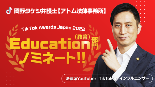 岡野タケシ弁護士は、ユーザーに新たな知識を届けたクリエイターとしてEducation(教育)部門でノミネート!
