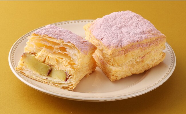 さくさくのパイ生地の中に特製のカスタードクリームと行方市産のさつまいもを合わせた、秋の優しい味わいのクリームパイです。