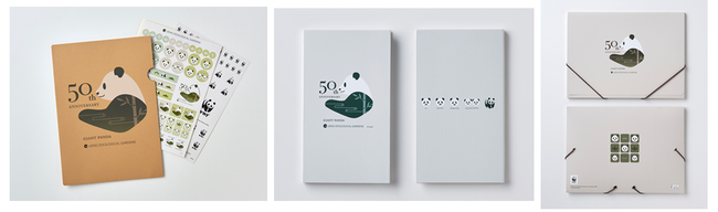 各商品には、「ジャイアントパンダ来園50周年記念」ロゴと、WWFのパンダロゴや、かわいらしい5頭の上野動物園のパンダのアイコンがデザインされています。尚、地球環境保全に配慮した紙を使用しています。