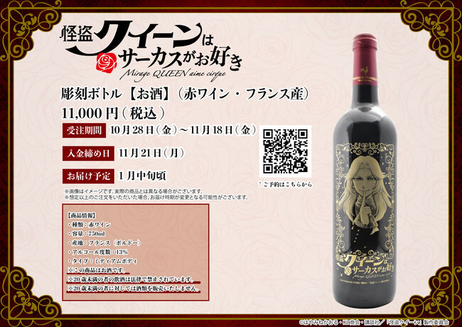 劇場OVA『怪盗クイーンはサーカスがお好き』より彫刻ボトル(赤ワイン)がeeo Storeで販売開始!