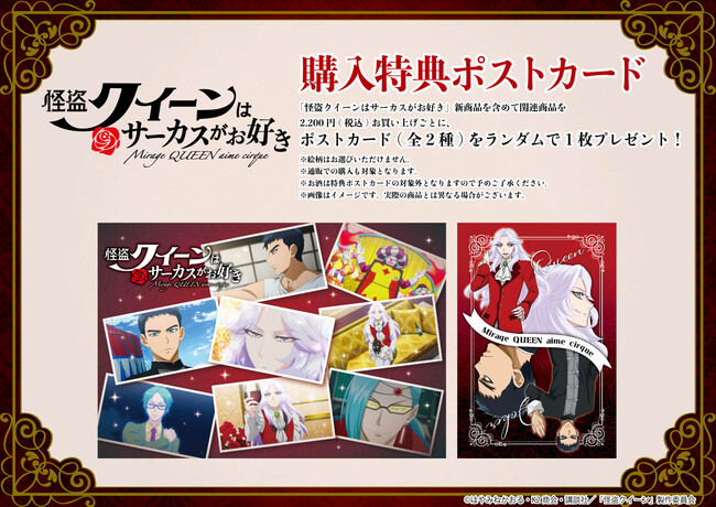 『怪盗クイーンはサーカスがお好き』新商品を含めて関連商品を2,200円(税込)お買い上げごとに、ポストカード全2種をランダムで1枚プレゼント!