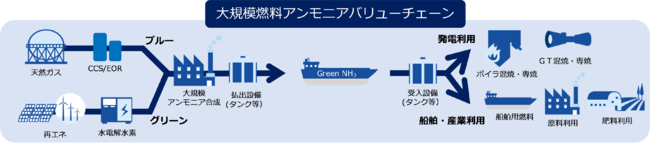 脱炭素燃料として火力発電や船舶に直接利用でき,水素キャリアでもあるアンモニアは,既に肥料や化学製品の原料として流通していますが,流通量は限定的です。今後,発電分野での利用が拡大したときの燃料需要に応えるためには,アンモニアを大量に生産する設備はもとより,輸送・貯蔵するインフラを整備することが不可欠であり,LNGと同様の流通形態を,国際間の連携により形成しなければなりません。
