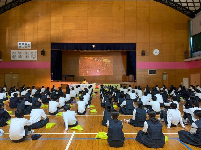 2022年10月20日(木)、株式会社ヤマダホールディングス(本社:群馬県高崎市、代表取締役会長 兼 社長 CEO:山田昇)は、公益財団法人山田昇記念財団(以下、山田昇記念財団)と共同で、青少年の健全な育成やスポーツや夢に対する積極性を高めるきっかけ作りなどを目的として、長与町立高田中学校(長崎県)の中学生250名を対象に400mH 東京五輪 元日本代表 安部孝駿氏による講演会を開催しました。中高生を対象とした講演会は今回が6回目となります。