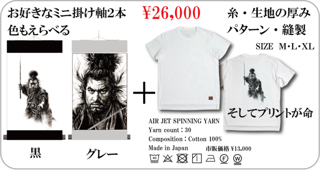 『ミニ掛け軸とこだわりのTシャツ』『ミニ掛け軸と京扇子』のセットメニューなどバラエティーにとんだリターン メニューをご用意しています。