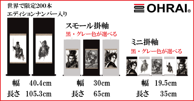 その名を広げる為に、イベント展示に使用する複製画として掛け軸を開発。 その理由としては、額装の複製画とは一線を引いた日本の『おもてなし文化』から。日本の伝統工芸で魅せる事で共に日 本国内そして世界へ向けて発信する為。