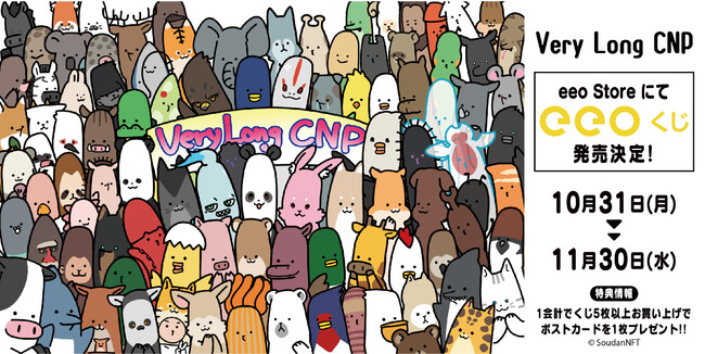ジェネラティブNFTコレクション『Very long CNP』のオンラインくじ「eeoくじ」が発売! 今話題のかわいいキャラクターたちが豪華景品に