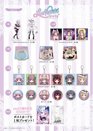 本日から発売となった『Love Addicted Girls』の「eeoくじ」には、S賞からD賞まで合わせて5種類の景品が登場します。