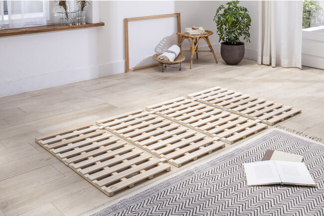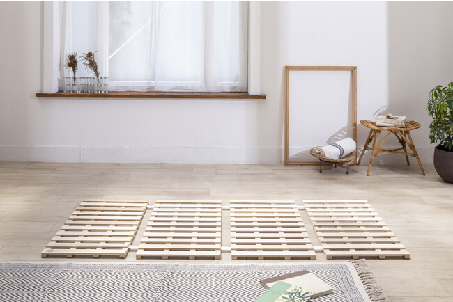 1.寝具を湿気のトラブルから守る通気性抜群のすのこマット。床に布団やマットレスを直に置くのではなく、すのこマットを1枚挟むだけで空気の通り道ができ通気性が改善、カビやダニ、冬の結露の発生も防ぎます。すのこの素材には調湿効果をはじめ、防虫・抗菌効果、断熱効果など優れた効果を持つ天然桐材を使用しています。
