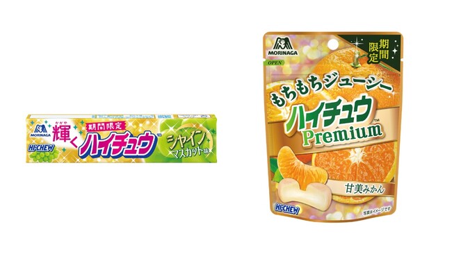 ~期間限定仕込み「ハイチュウ」発売~さわやかな甘さとみずみずしさ「輝くハイチュウ<シャインマスカット味>」もちもち食感「ハイチュウプレミアム<みかん>」11月1日(火)より新発売